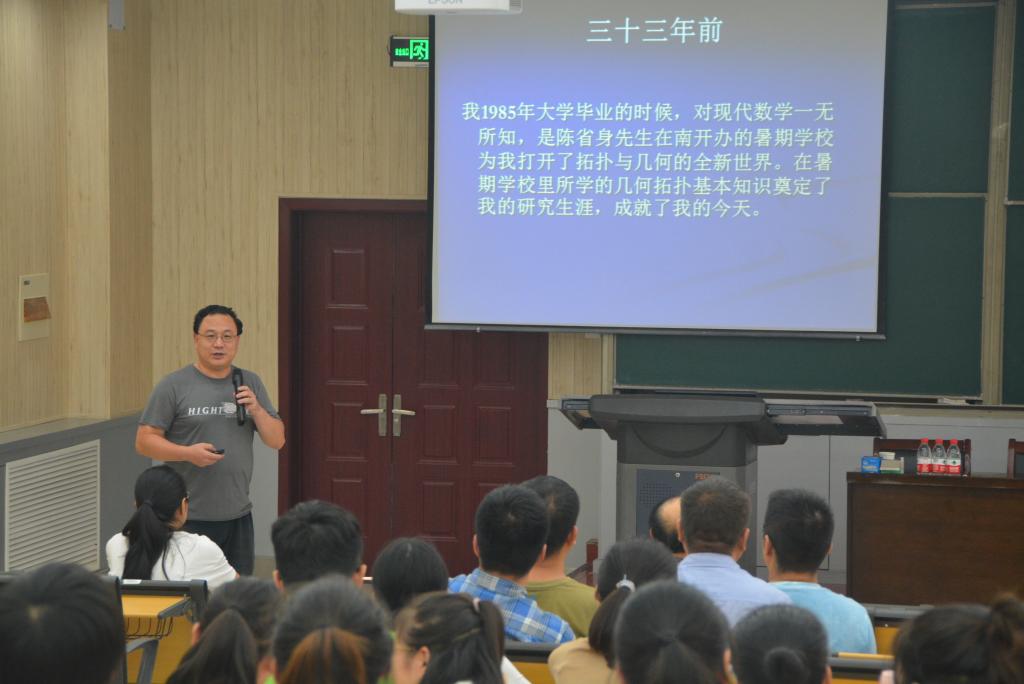 师生代表100余人参加了报告会。报告由我院院长冯淑霞主持。刘教授给大家介绍了他近期的研究成果,一种用整体几何方法来研究Kahler流形上复杂结构的变化。更准确地说,是利用完全Kahler流形上的Hodge理论算子,从而得到了复结构整体变化下全纯正则型的封闭公式,并给出了一般Belrtami方程和Kuranishi障碍方程在复杂结构变形理论中的应用。刘教授在报告中语言幽默风趣,全体师生陶醉其中。报告最后,刘教授回答了师生提出的一些学术问题,并鼓励大家要不畏艰难、坚持梦想、敢于追求。