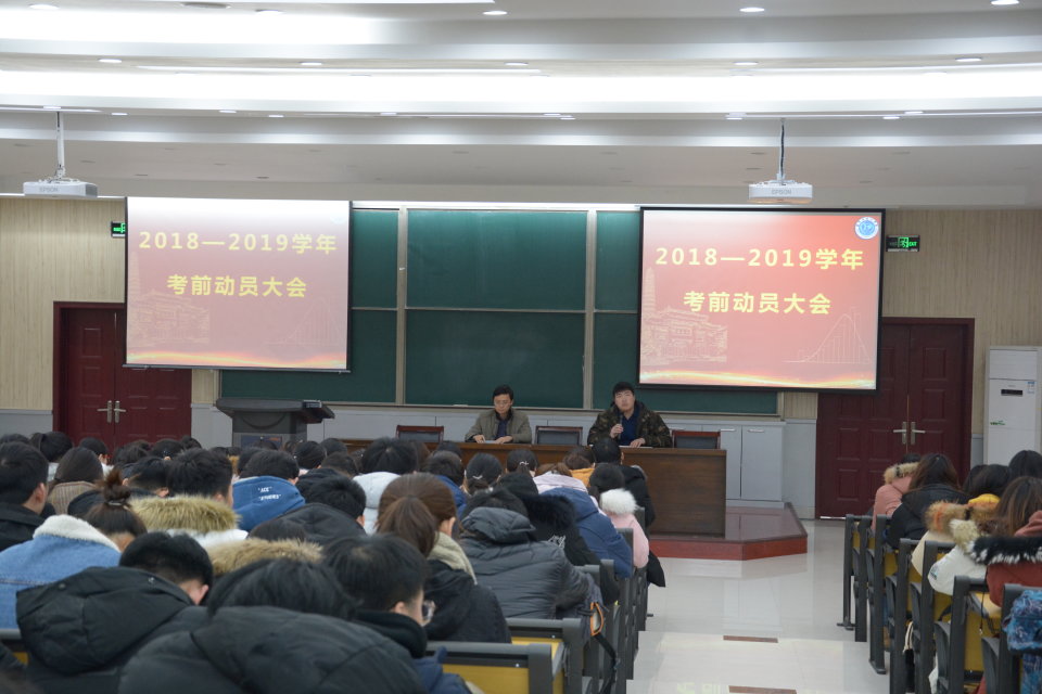 考风考纪,营造文明、诚信考试的良好氛围,构建诚信校园,2018年12月28日-2019年1月4日,我院各年级分批召开2018-2019学年第一学期期末考试考前动员大会。院党委副书记赵红磊,各年级辅导员出席动员会。