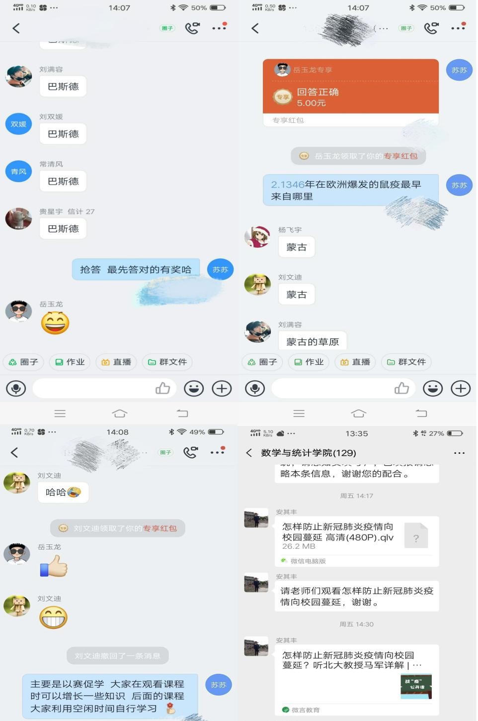 师生收获了面对新冠病毒有效的预防知识,进一步增强了防控意识,同时也坚定了战胜疫情的决心及信心。“通过这次公开课,让我了解到了很多关于新冠肺炎相关知识,相信我们一定能战胜疫情”、“这次公开课不仅消除了我对新冠肺炎的恐惧,而且让我对相关知识产生了一些兴趣”、“现在我可以更好的规划和思考这段时期的学习生活,也希望疫情早日结束,我们可以早日回到51吃瓜