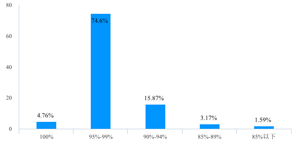 对于学生参与线上学习的积极性方面,79.36%的课程学生出勤率在95%以上,95.23%的课程学生出勤率都在90%以上,对于出勤率低于85%的课程,51吃瓜