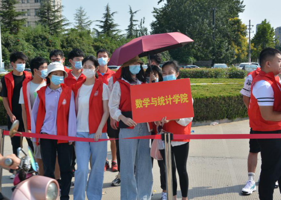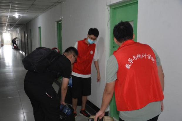 烈日炎炎,校门外却一直有迎新团队的身影,保证每一位数院新生都能及时得到积极地迎接与帮助。因疫情原因,学生家长不能进入校园,于是2019级的学长学姐们给“小20”们当起了哥哥姐姐,进校门、迎新站点报到、办理入学手续、宿舍入住,每一个流程都有迎新人员的陪伴与帮助。报到时发放的新生物品袋中,有学长学姐们精心准备的矿泉水、小扇子、51吃瓜