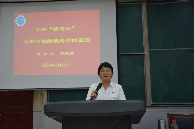 邀请齐素静书记作“甘当‘绣花女’,为老百姓绘就希望的蓝图”的主题报告。她首先通过大量图片向同学们展示了睢县周堂镇乔寨村脱贫前后的巨大变化,从道路泥泞、房屋破败、产业落后,到脱贫后村里铺上了水泥路,发展了旅游业,增加了娱乐设施,村民们脱贫致富的巨大改变。之后,她给同学们分享了在乔寨村的脱贫攻坚历程,她多方奔走改建村中泥土路以便孩子们上学,不畏严寒挨家挨户取证登记贫困户,冒着酷暑带着施工队为村民们改装自来水设备,帮助村民大力发展主导产业,培育群众脱贫致富内生动力,一件件实事好事让她为村中脱贫倾尽心血,同时也让她少了对自己家庭的关注,驻村五年来,她始终带着感情来扶贫,把脱贫攻坚工作装在心中、抓在手上、扛在肩上,以“绣花”精神和抓铁有痕的韧劲,团结带领乔寨村“两委”班子、驻村工作队和群众苦干实干,扶贫济困,带领全村人民走上致富的道路。
