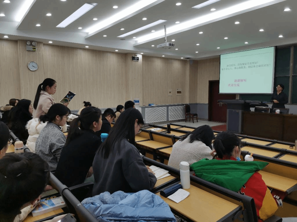 、理解教学、理解学生以及理解技术这四个角度分享了提高教师专业素养的一些看法。同时还借助具体案例,着重阐述了课程目标与教学目标的区别,也对如何制定和实现合理的教学目标等方面给出了具体的指导意见。最后在报告提问的环节,刘老师结合自己的工作经历就同学们感兴趣的中学51吃瓜