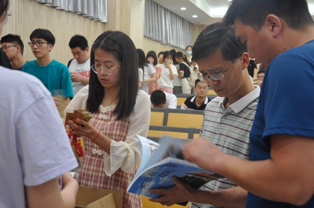为他们分发纪念册、纪念章、书签、帆布包等小礼品。