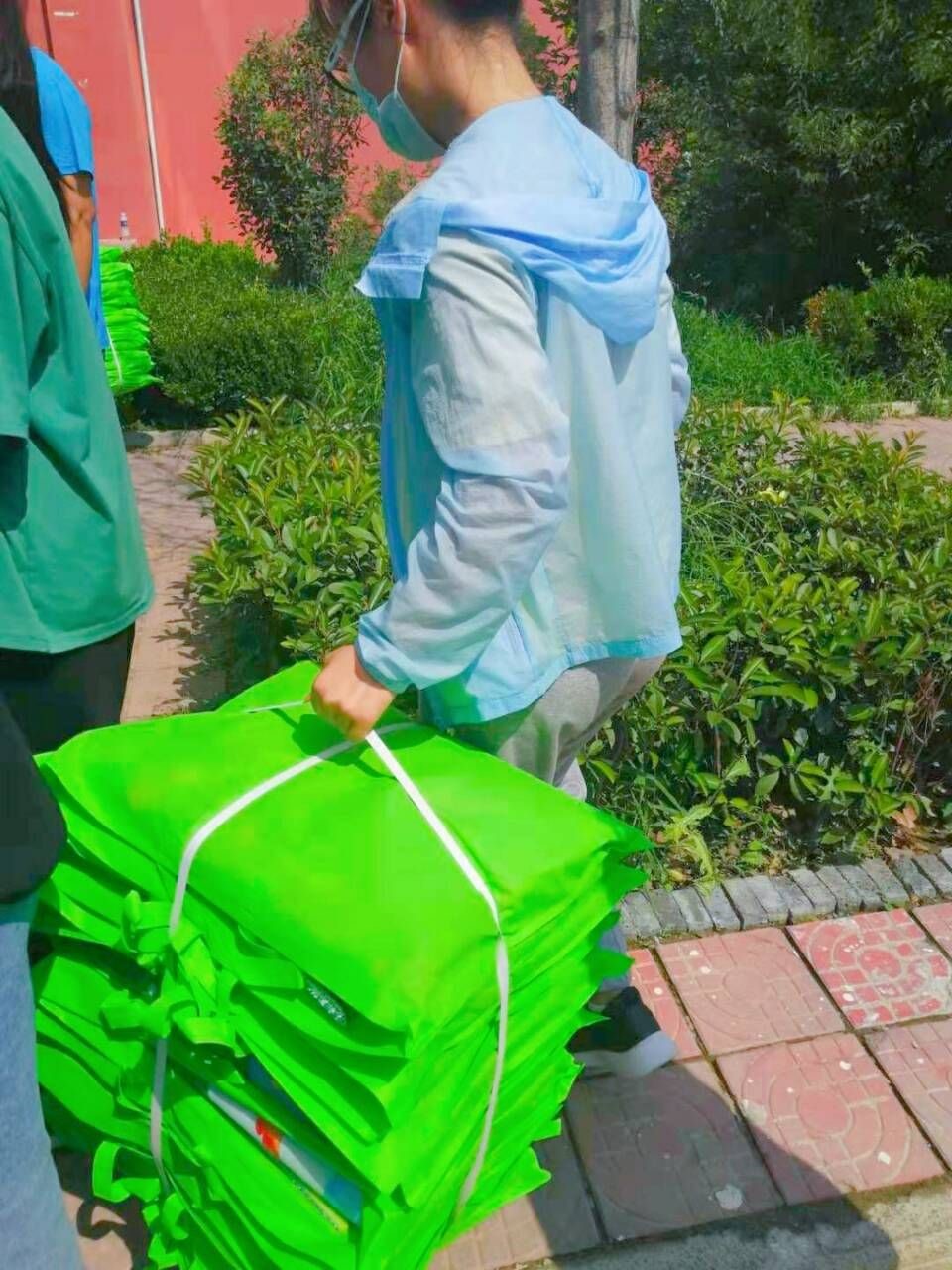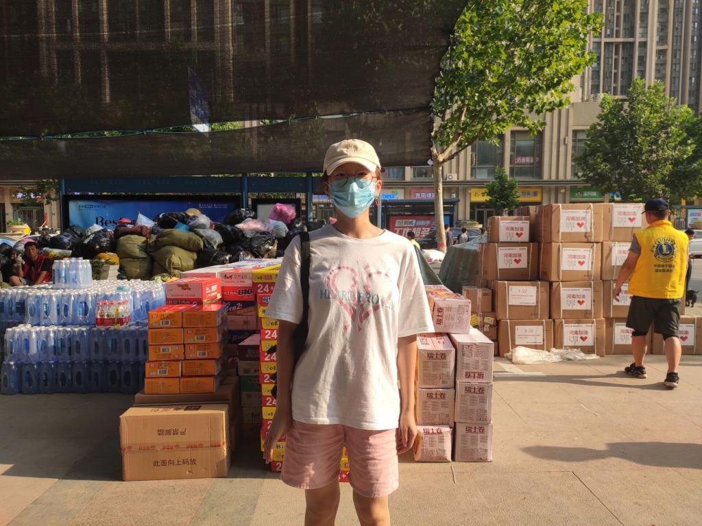 2018级李嘉宁:这个夏天没有像以往一样艳阳高照,全国多地发生了多日的强降雨天气,很多地方发生了严重的洪涝灾害。河南暴雨洪灾发生后,全国源源不断的爱心捐助物资发到郑州,需要按需发往受灾严重的地区。我在郑州市升龙城附近的一个物资转移点做志愿服务,这个志愿活动是由中国狮子联会组织的,志愿者们协助做好救灾物资接收、搬运工作。大家顶着烈日,排百米长队,干的热火朝天,用接力方式搬运救灾物资,分别将药品,方便面,矿泉水,沙琪玛,被褥衣物运往卫辉,修武,巩义等受灾严重地区。