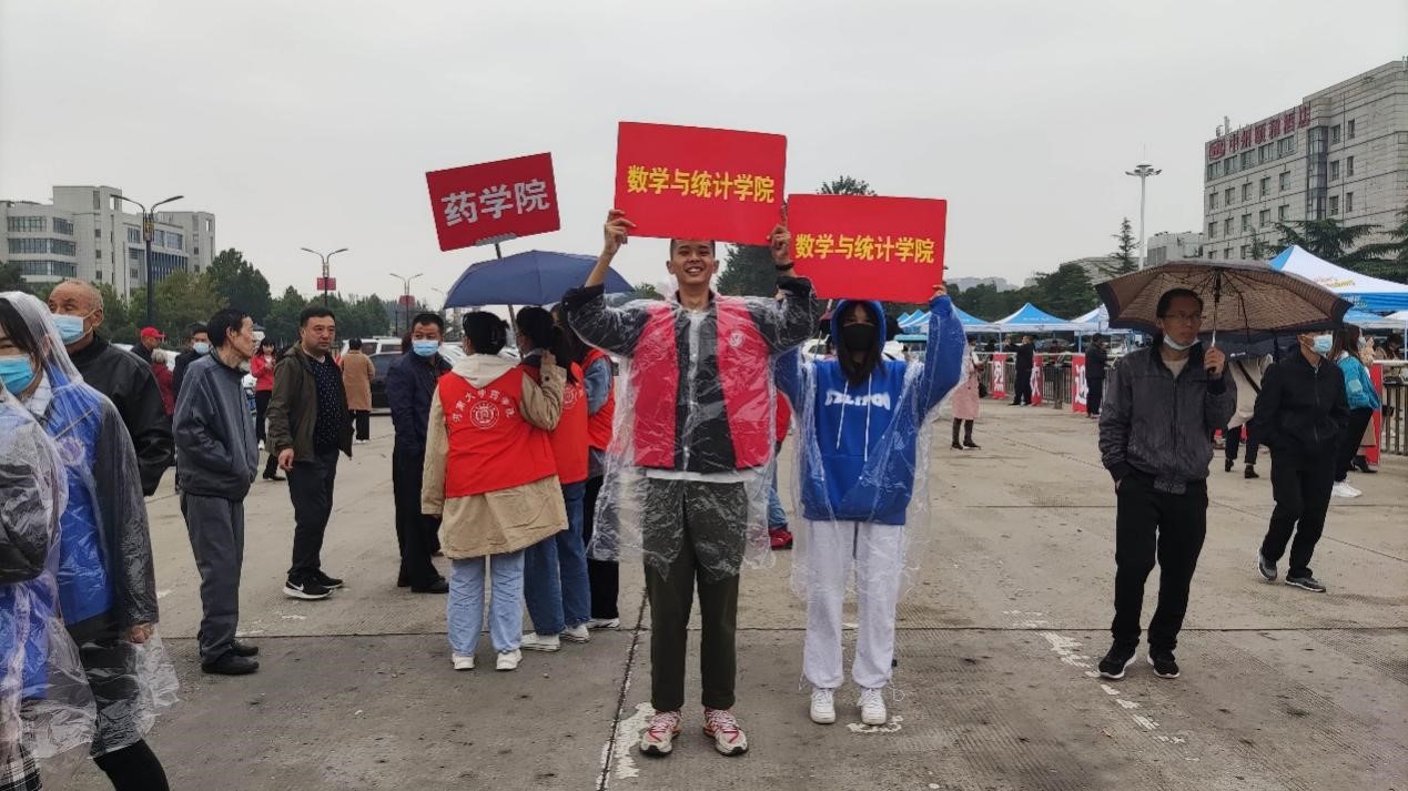 迎新团队在校门外高举牌子,热情激昂等待“小21”