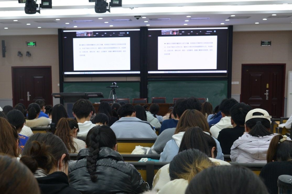 相关领域及诸多应用学科之间的关键桥梁,并指出了偏微分方程与众多其他学科存在学科交叉的特点。此外,他还对混合型方程、半经典极限问题、hilbert第六问题等诸多公开问题进行了分析,引起了在场学生对偏微分方程的极大兴趣。最后,辛周平向同学们传授了学好偏微分方程的方法,同时也分享了自己的教育教学经验。报告结束后,辛周平与在场师生就研究生培养问题进行了互动交流。