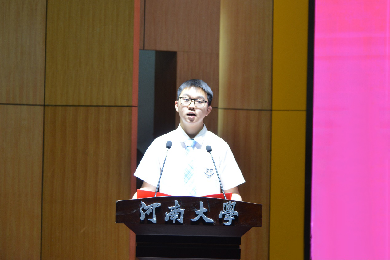 2018级统计学专业湛松扬作为毕业生代表上台发言。她回忆了大学生活的酸甜苦辣,一句“相聚不知时光短,别离才知情意浓”,深刻地表达了她对在这片土地上留下的灿烂青春的留恋以及对老师们和同学们的不舍,回首过去,展望未来,她希望在座各位都能立志出乡关,誓取功名还!