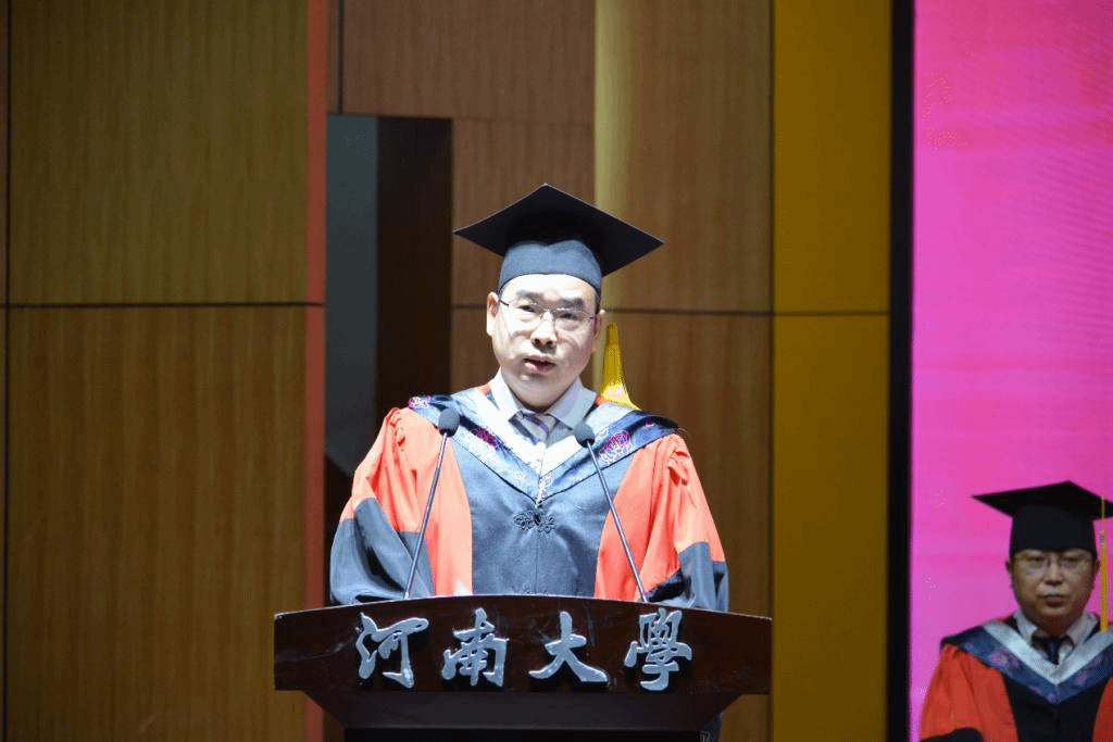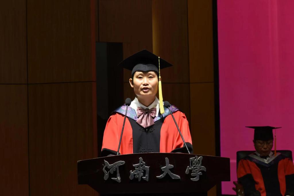 冯淑霞向顺利完成学业的302名本科毕业生表示祝贺。她首先肯定了毕业生们在大学时光中对“明德新民,止于至善”校训的坚守,对“团结 勤奋 严谨 朴实”校风的传承。其次,她希望同学们珍藏大学时光,让这段经历成为他们今后攀登科学高峰、开创美好人生的宝贵财富;她希望同学们厚植河大文化,传承河大精神,勇敢面对困难,战胜各种挫折;她希望同学们坚定理想信念,牢记初心和使命,追求更加精彩、更有高度、更有境界的人生;她希望同学们坚持守正创新,不断追求卓越;练就过硬本领,锤炼高尚品质;勇于担当作为,甘于默默奉献。最后,她真诚祝愿同学们前程似锦,展翅飞翔,不负韶华!