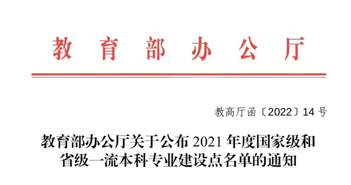 在一流本科专业“双万计划”建设方面取得的又一项优异成绩。