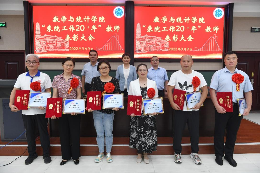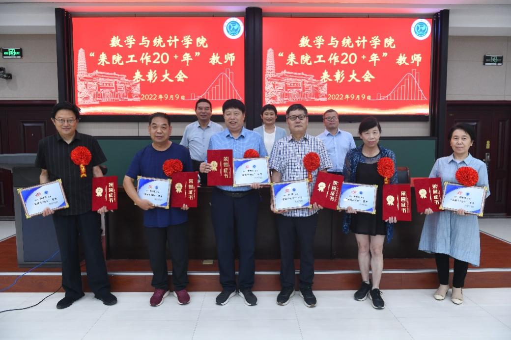 委员会关于表彰“来院工作20+年”教师的决定》。伴随着欢快的乐曲,与会领导为戴着大红花的受表彰教师颁发荣誉证书和奖杯,并合影留念,会场气氛热烈又温馨。