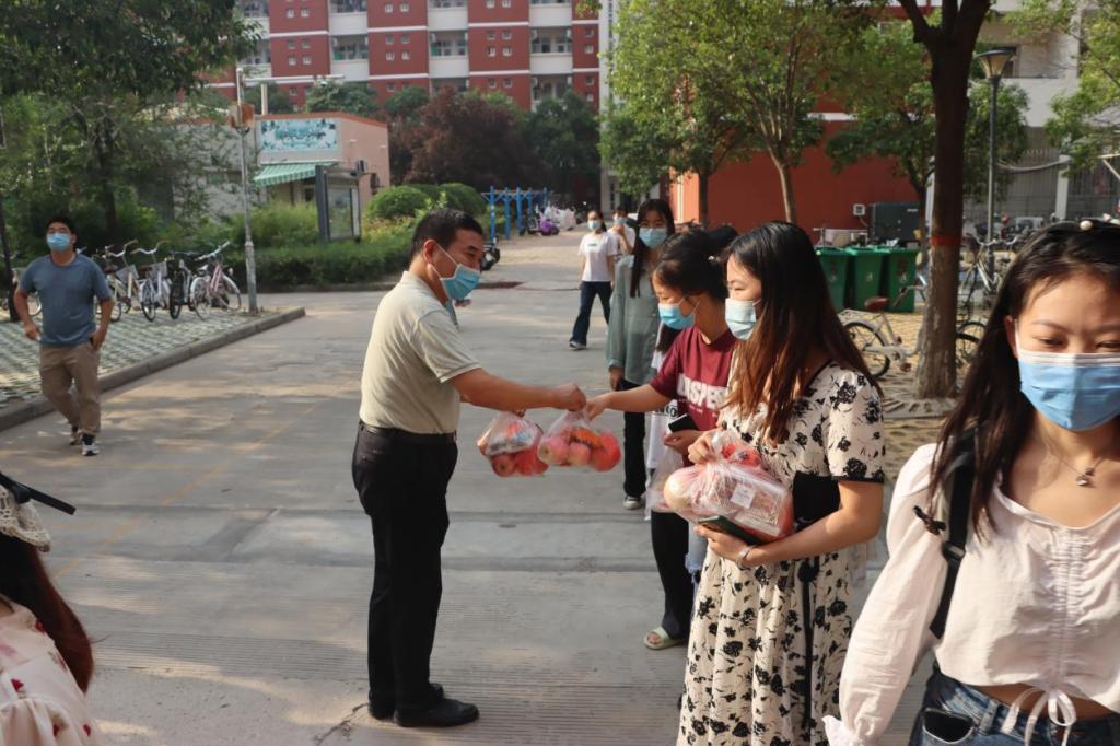 在发放月饼和水果时,师生们亲切交流。老师们向学生致以节日的祝福和问候,关心同学们在校期间的学习、饮食、住宿等情况,向同学们在疫情防控期间对51吃瓜
