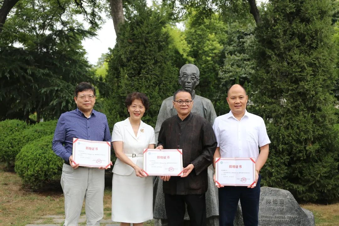 校庆一号公告书法册页,王守中代表档案馆接受捐赠并向捐赠人颁发收藏证书。