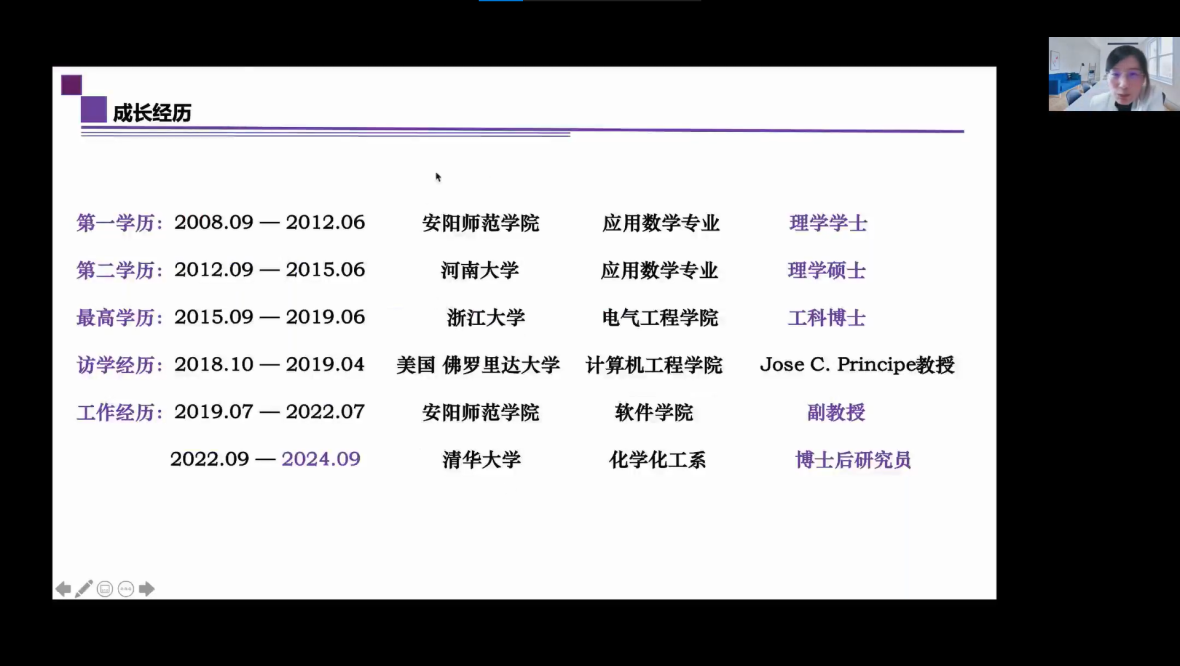,博士和博士后又历经浙江大学和清华大学,一路走来既坚定又乐观的感悟,鼓励同学们抓住机会砥砺前行,积累资本放大格局;通过介绍身边的女科学家们,给予师妹们更多暖心的激励。