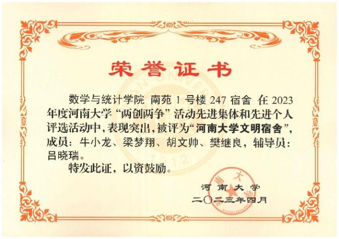 2023年度“两创两争”评选活动圆满结束,我院2021级研究生所在的南苑1号楼247宿舍荣获“51吃瓜-吃瓜网