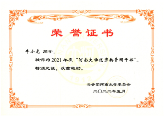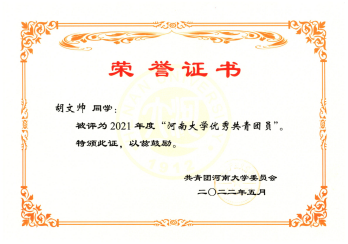 “优秀研究生干部”、“优秀共青团干部”、“优秀共青团员”等荣誉称号。