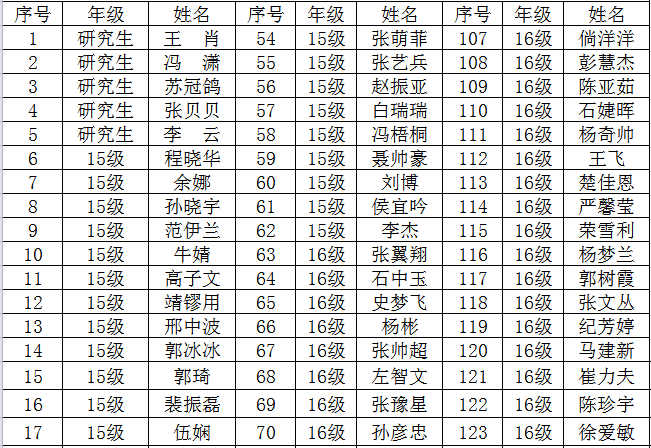 优秀学员名单